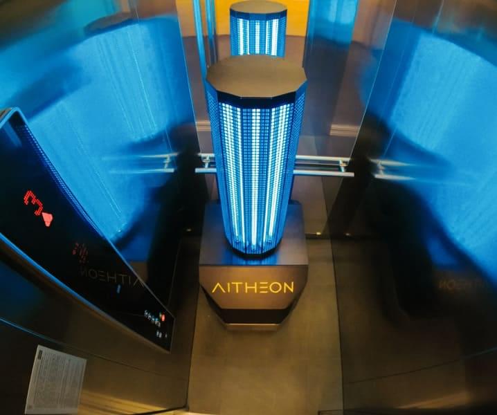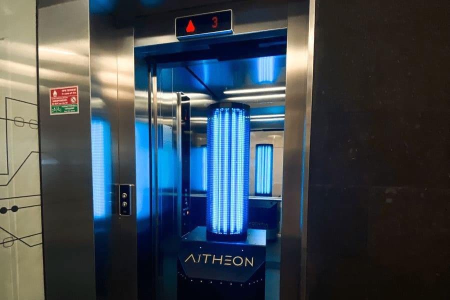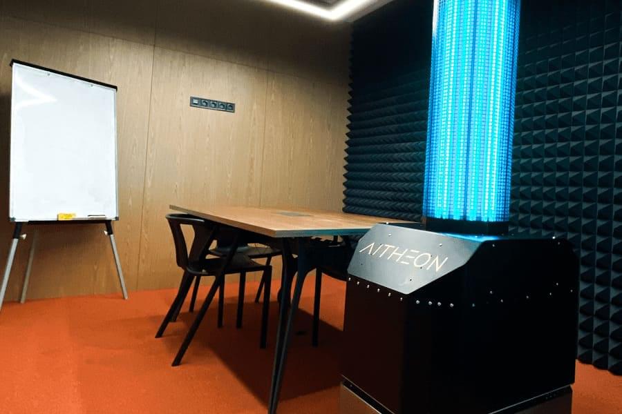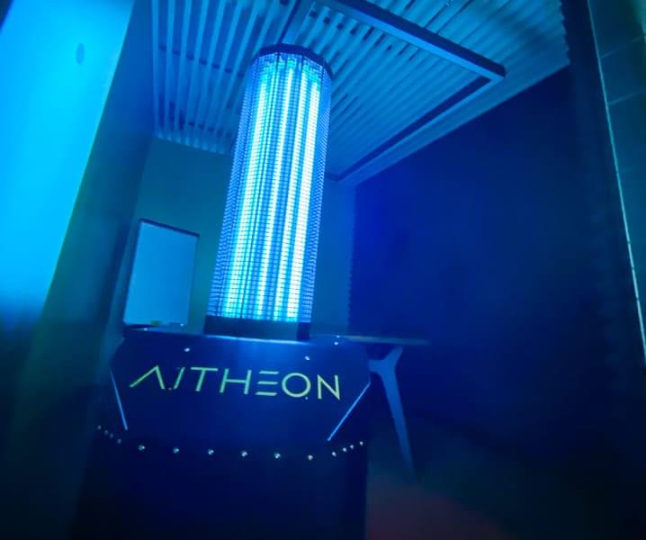 Aitheon’s Spray Disinfection Accessory disinfects with hydrogen peroxide vapor treatment. It generates a cloud of extremely small disinfectant liquid droplets reaching inaccessible areas that may be difficult or not possible to reach using other cleaning methods. The main advantage of the spray compared to UV-C Mercury lamps is a wider disinfection area.
